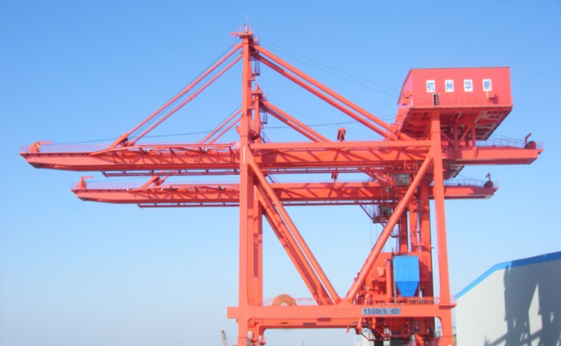 公司于1990年成功研發(fā)公司首臺(tái)臺(tái)四卷筒牽引式卸船機(jī)試驗(yàn)機(jī),在上海吳涇熱電廠投入使用,1993年1臺(tái)600t/h機(jī)房下置的四卷筒牽引式卸船機(jī)在華能威海電廠投入使用,至今已運(yùn)行近30年,設(shè)備情況良好。經(jīng)過不斷地發(fā)展,不斷地積累經(jīng)驗(yàn),不斷地研發(fā)創(chuàng)新,華新機(jī)電生產(chǎn)制造的卸船機(jī)技術(shù)在不斷地升級(jí),產(chǎn)品系列從200t/h~2400 t/h,目前生產(chǎn)制造過的生產(chǎn)率最大卸船機(jī)為馬來西來亞TJB2400t/h項(xiàng)目,具備設(shè)計(jì)制造2500~3500t/h卸船機(jī)的能力。產(chǎn)品廣泛應(yīng)用于電力、冶金、建材、港口、散貨碼頭等行業(yè),在“一帶一路”的偉大創(chuàng)舉下,產(chǎn)品陸續(xù)出口印尼、馬來、菲律賓、新加坡、越南等東南亞國家以及西亞、中東、南美、非洲等地區(qū),產(chǎn)品遍及國內(nèi)外。