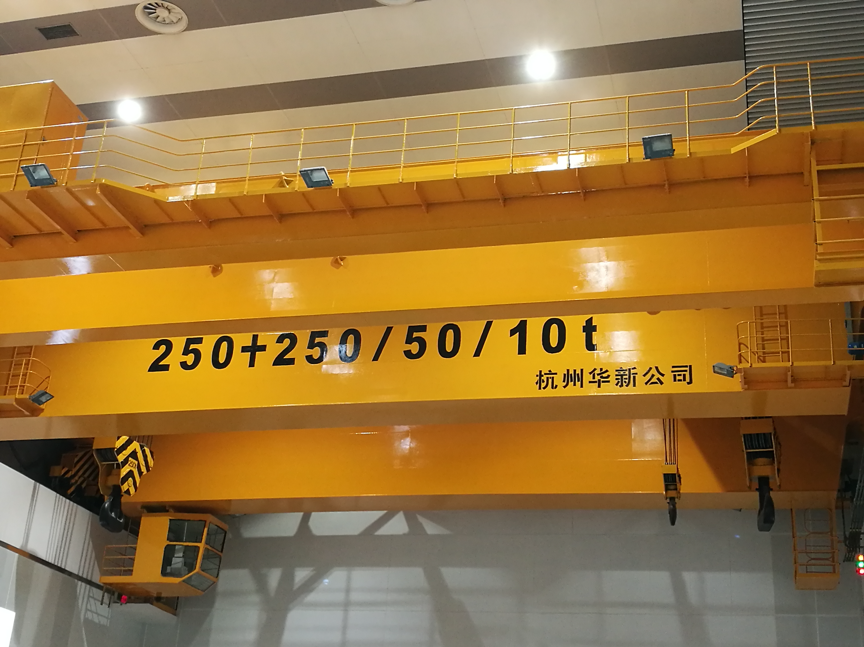 公司設(shè)計(jì)制造的所有橋機(jī)及門機(jī)的起升小車系消化吸收國外先進(jìn)技術(shù),結(jié)合我國當(dāng)時的配套水平,綜合研究院多年的技術(shù)研制經(jīng)驗(yàn),遵照GB/T3811-2008《起重機(jī)設(shè)計(jì)規(guī)范》、GB/T14405-2011《通用橋式起重機(jī)》等標(biāo)準(zhǔn),同時參照國外有關(guān)起重機(jī)標(biāo)準(zhǔn)及歐洲搬運(yùn)協(xié)會主流橋式起重機(jī)機(jī)型研制而成,節(jié)能減排,經(jīng)濟(jì)環(huán)保,特別適合地下廠房、新型工廠及大噸位貴重物件的吊裝、搬運(yùn)就位工作。公司首臺臺橋機(jī)為1990年研發(fā)、1992年投入生產(chǎn)的寧波北侖電廠80/20t橋式起重機(jī),公司首臺臺門機(jī)為1994年向富春江發(fā)電廠提供的2×20t尾水門機(jī)。近三十年的發(fā)展,已向國內(nèi)外眾多優(yōu)質(zhì)客戶提供千余臺橋機(jī)和門機(jī)設(shè)備,是目前業(yè)內(nèi)最先進(jìn)、最成熟的低凈空小車結(jié)構(gòu)。目前制造過的單小車橋機(jī)最大額定起重量為800t,雙小車橋機(jī)最大額定起重量為500t+500t,具備1500噸橋機(jī)的設(shè)計(jì)制造能力;制造過的門式起重機(jī)最大額定起重量為900t的造船龍門吊。